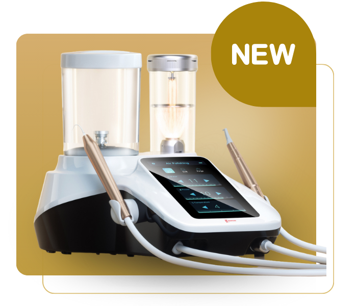 Woodpecker PT-A es la solución combinada y completa para una profilaxis perfecta: eficaz, cómoda y segura. Destartarizador y chorro de bicarbonato en una sola unidad.